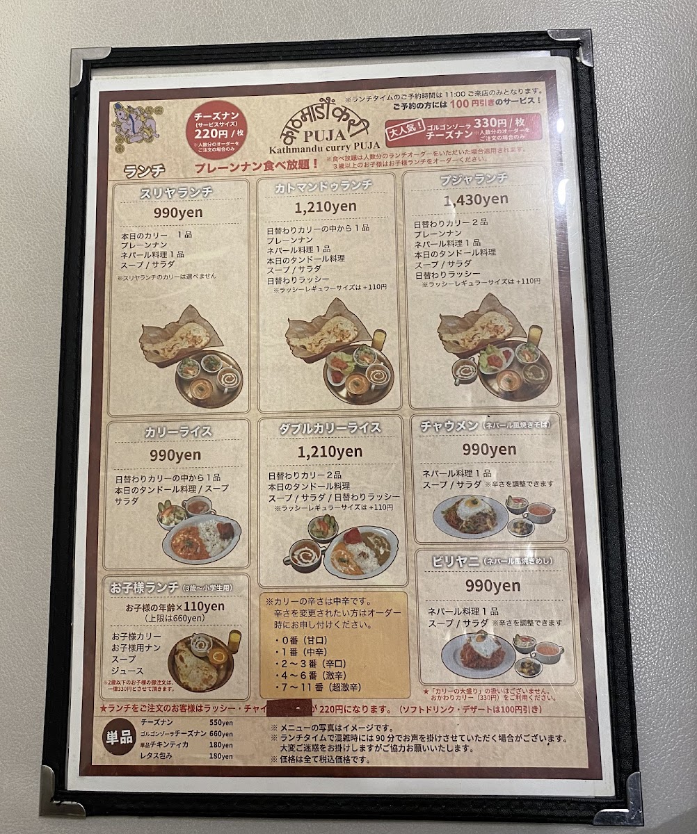 The menu at Katomandukari Puja Koshien offers a delightful range of flavorful dishes, perfect for those craving authentic Indian and Nepali cuisine. A standout item is the カレー, which offers a rich, aromatic curry base paired with a variety of meats and vegetables. The pujaランチ&チーズナン is a must-try for lunch, combining tender curry with soft, cheesy naan that perfectly complements the spices. For those looking for something smoky and savory, the タンドリーチキン delivers with its perfectly marinated chicken grilled to a juicy finish. The restaurant also serves delightful desserts like クリフィと本日のプリン チャイプリン, which offers a unique twist on traditional pudding with a chai flavor that’s both comforting and satisfying. For a sweet touch, indulge in the refreshing バニラアイス, which is a simple yet satisfying way to end your meal. If you’re a fan of rice dishes, the ビリヤニ ラッシー is a flavorful rice dish paired with a creamy lassi, providing a perfect balance to the spices. The サラダ ネパール料理 スープ ラッシー brings a fresh crunch with a side of Nepali-style salad, soup, and a refreshing lassi to complement the heat of the meal. The キーマナン is another excellent choice, offering a flavorful naan stuffed with spiced minced meat, making for a hearty addition to any meal. Overall, Katomandukari Puja Koshien serves a variety of delicious, well-balanced dishes that capture the essence of Indian and Nepali flavors.